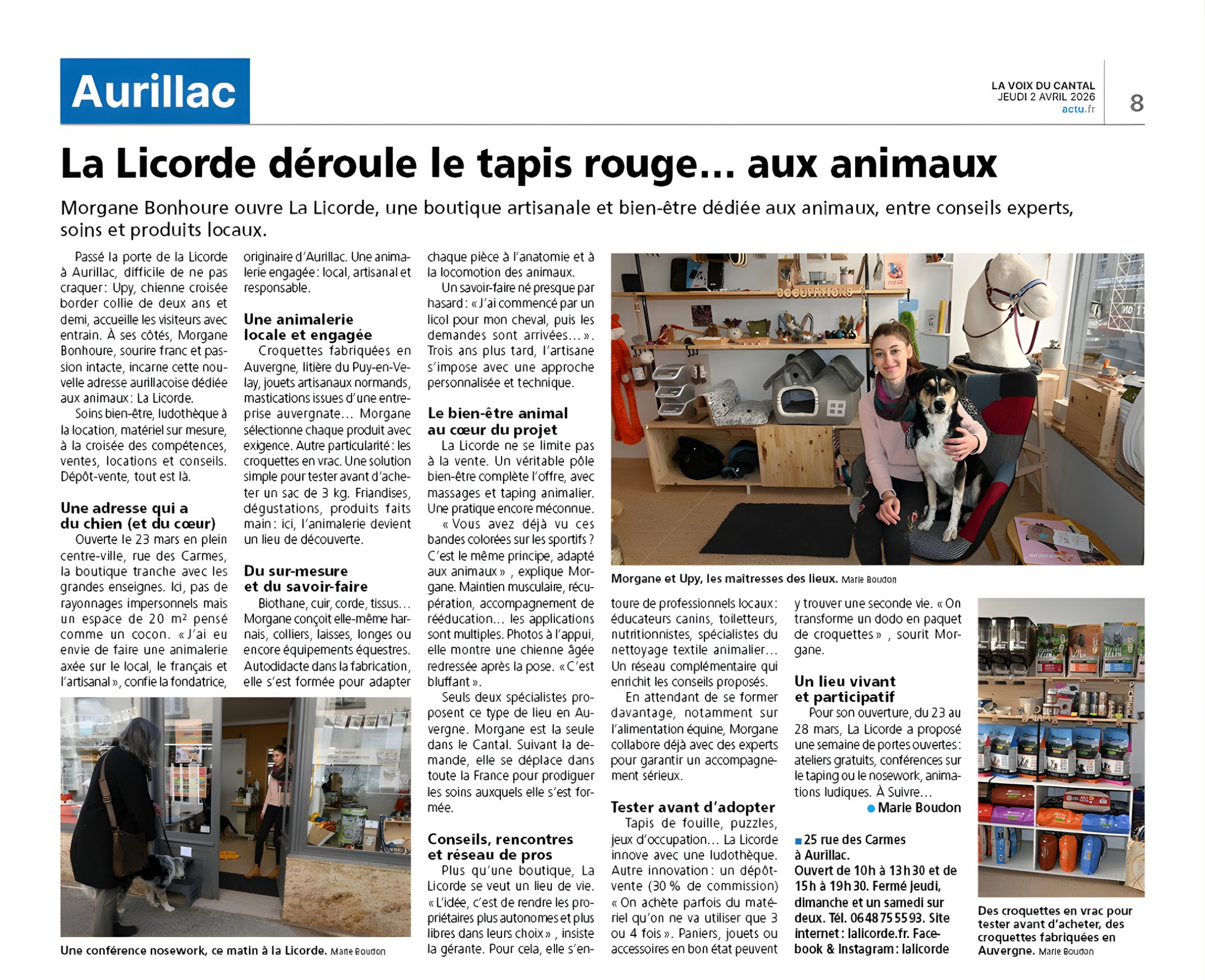 Article de presse paru dans le journal « La Voix du Cantal » (=actu.fr) le Jeudi 01 Avril 2026.